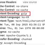 Tomcat7 부터는 톰캣 자체에 압축기능을 사용할 수 있습니다. tomcat의 server.xml 파일을 열고 1234567891011 Colored by Color Scriptercs 압축을 할 MimeType을 설정하시고, 서버를 실행합니다. compressionMinSize의 Default 값이 2048입니다. 압축단위를 설정하는 것인데, 너무 작게할 경우에는 성능상으로 별로 좋지 않다고하니 적당한 크기로 설정을 하면 좋다고 합니다. 자세한 사항은 공홈에서 확인하시면 좋을 것 같습니다. Content-Encoding 을 보시면 gzip으로 인코딩 되어 있는 것을 확인할 수 있습니다. 저같은경우는 테스트용 홈피로 페이지 자체가 용량이 크지 않아서 크게 체감하지는 못하였습니다만, 성능 비교에 대한 부..